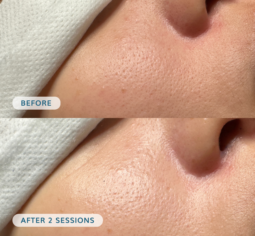 This facial treatment reduces the appearance of enlarged pores and rough skin texture, making the skin feel softer and more polished.